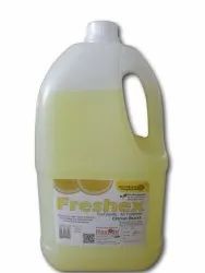 The 5L Freshex Citron is a ready-to-use, aerosol and synthetic solvent-free air freshener designed to provide an instant, long-lasting, and fine citrus fragrance to an environment. It contains purified water, fragrance, a natural oil-based solubilizer, denatured ethanol, and food-grade preservative and colour, and it is 97% biodegradable. To use, spray 6-8 times in a 10x10 foot room, avoiding direct spraying on fabrics.