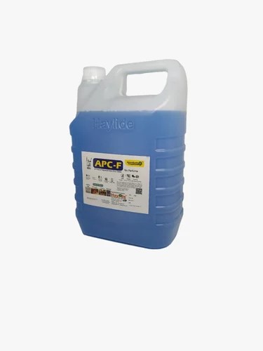 Haylide APC F is a heavy-duty, all-purpose fragrance cleaner for various hard surfaces like wooden, granite, marble, tile, glass, and metallic floors. It is a liquid formulation packaged in a 5-liter can and is known for being non-sticky, germ-fighting, and streak-free. The cleaner is designed to be diluted for use, with higher concentrations for mopping/scrubbing and lower concentrations for spray-and-wipe applications on glass and metallic surfaces.